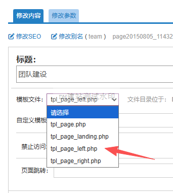 在页面管理 - 编辑页面时选择不同的模板文件。